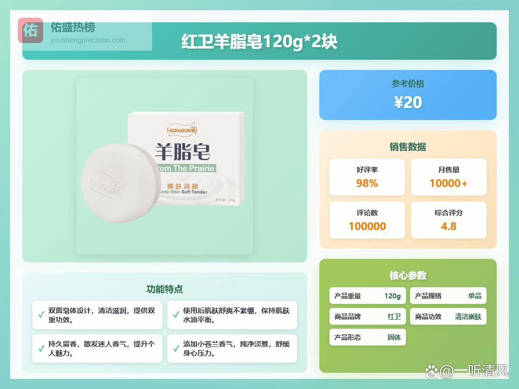 要说红卫肥皂怎么选,其实真没那么复杂。首先看你最注重啥,是清洁力?如果经常感觉毛孔堵塞,或者油光满面,那就选主打深层清洁的,比如双效硫磺皂,那清洁力绝对杠杠的!要是你皮肤比较敏感,或者追求温和,那就试试羊脂皂或者羊乳洁肤酪,这些都添加了天然油脂,洗完不会觉得干巴巴的。再一个,就是看个人习惯,喜欢一块皂多用的,可以选那种双面设计的羊脂皂,一面清洁一面滋润,超级方便。对了,红卫肥皂也有不同规格的,可以根据自己的用量来选择,要是确定好用,直接买两块装的更划算,这样算下来更划算,也省得经常跑去补货啦!