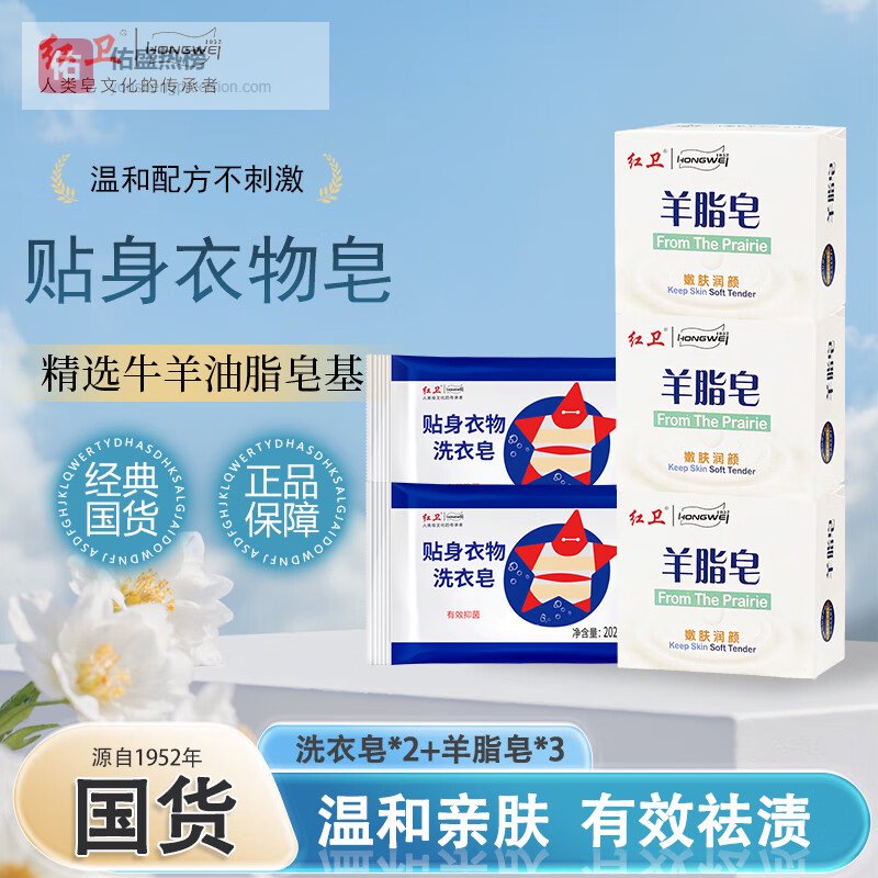 红卫香皂羊脂皂洗脸沐浴祛螨硫磺皂清洁去污渍不伤手肥皂男女儿童适用 羊脂皂 120g 3块 【赠内衣皂2块】¥