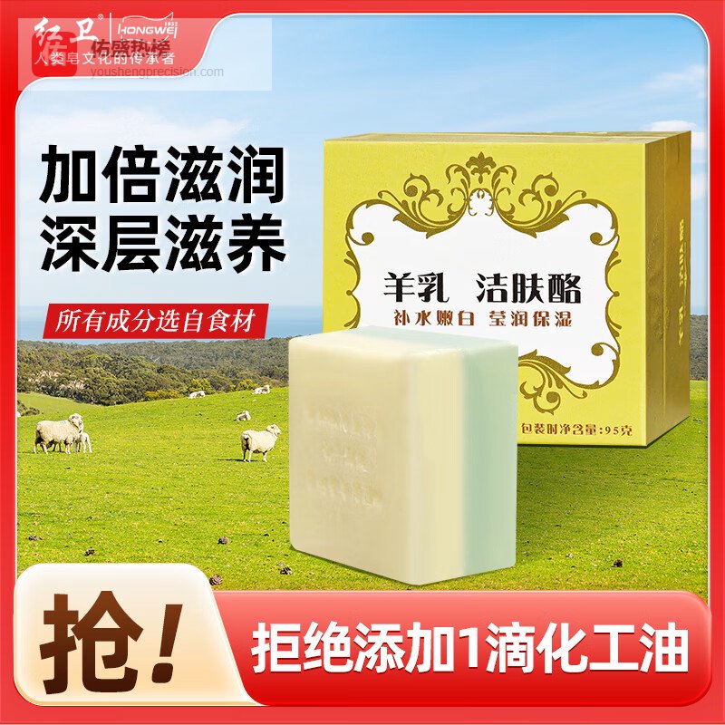 红卫羊乳羊脂皂95g香皂洗脸洗澡二合一羊奶洁面皂肥皂¥