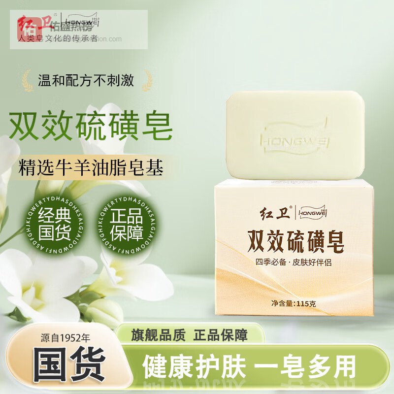 红卫双效硫磺皂香皂肥皂羊脂皂沐浴洗澡祛螨抑菌清洁温和不刺激沐浴露 双效硫磺皂 115g 1块 【尝鲜装】 规格¥