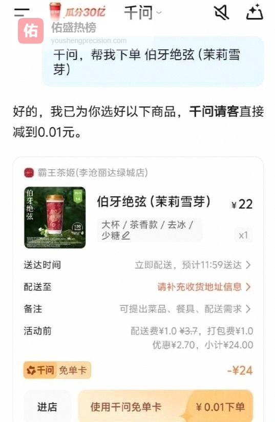 千问用1分钱奶茶把门槛打到地板,逼着大家尝一口“AI办事”的味道