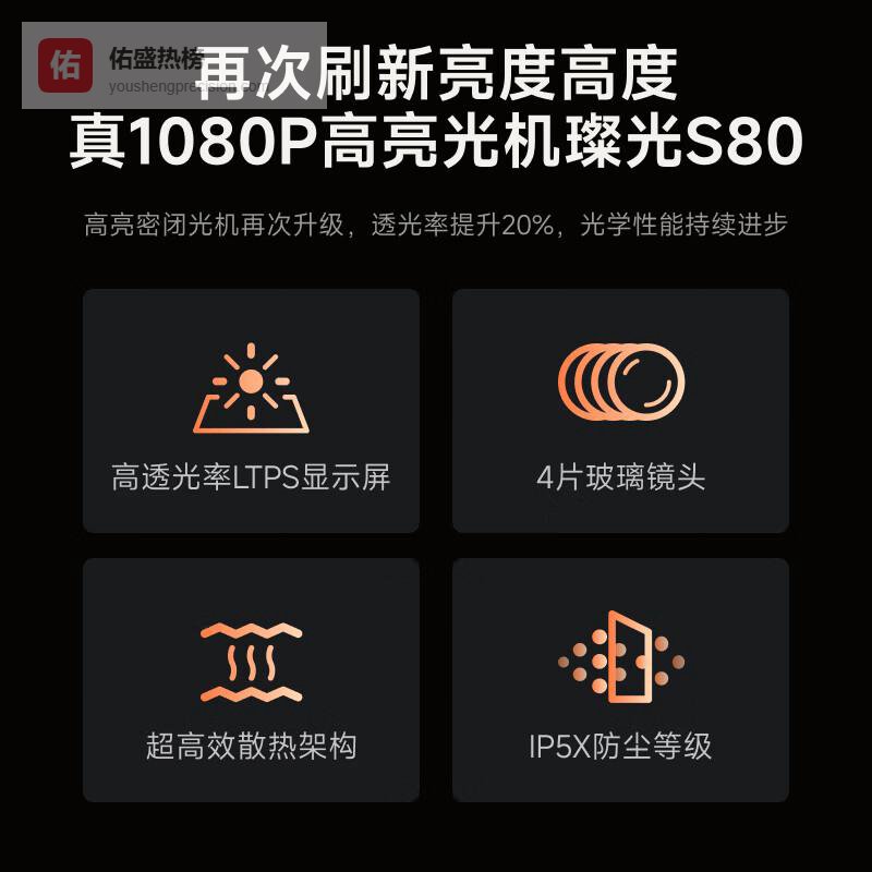 1️⃣高亮度呈现:采用璨光S80真高亮光机,亮度可达950流明,即使在光线充足的环境中,也能确保画面的清晰细腻,让每一个细节尽显无遗。