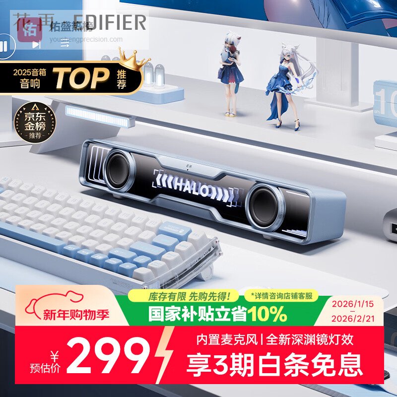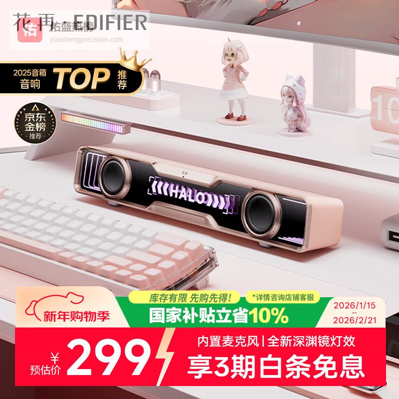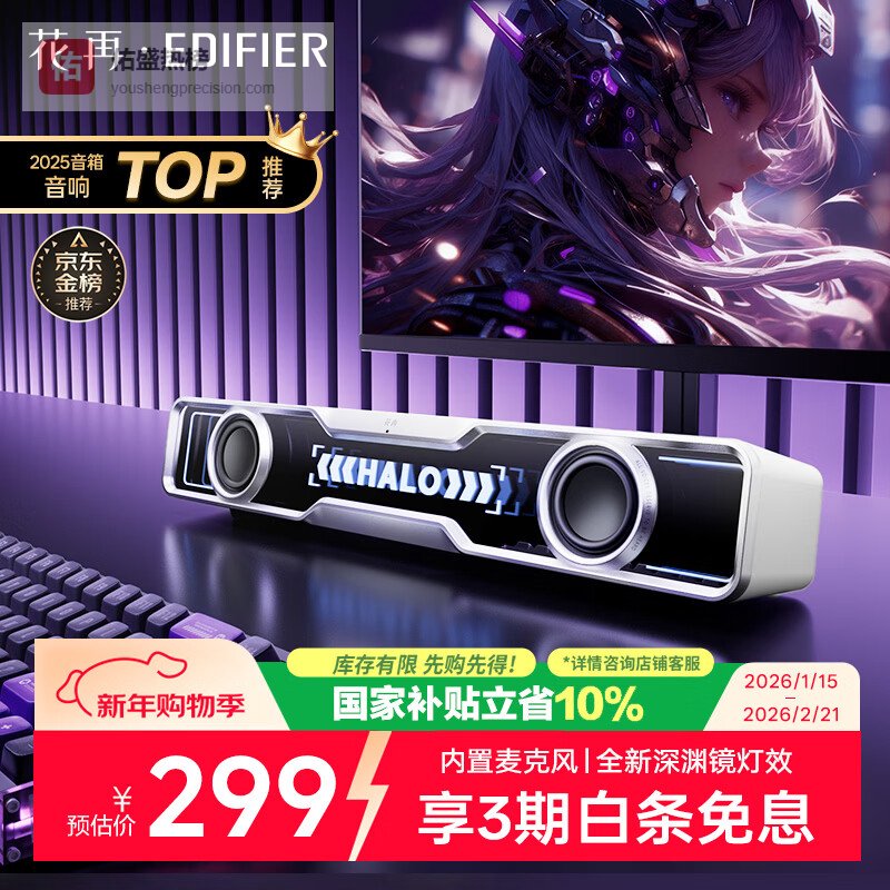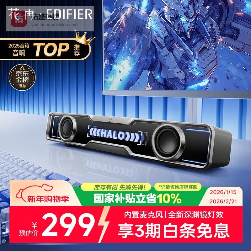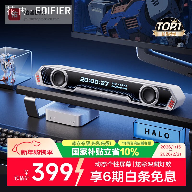 【京东自营】漫步者花再HaloSoundBar桌面音响音箱蓝牙5.4高保真台式电脑游戏音响长条音箱独¥
