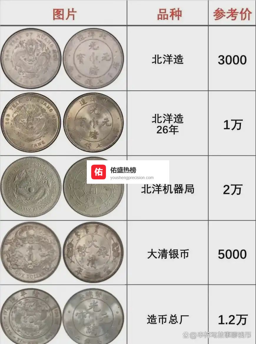 再比如那些珍稀版别的银元,比如大清宣三原光币、老江南直齿边、民国小头签字版,十年前的价格大概在几万元、几十万元,而现在,它们的价格已经涨到几十万元、上百万元,涨幅超过10倍,甚至更高。这种长期的、稳健的高收益,是黄金很难做到的——黄金哪怕短期涨幅再高,也很难在十年之内实现10倍的涨幅,而且还伴随着巨大的风险。