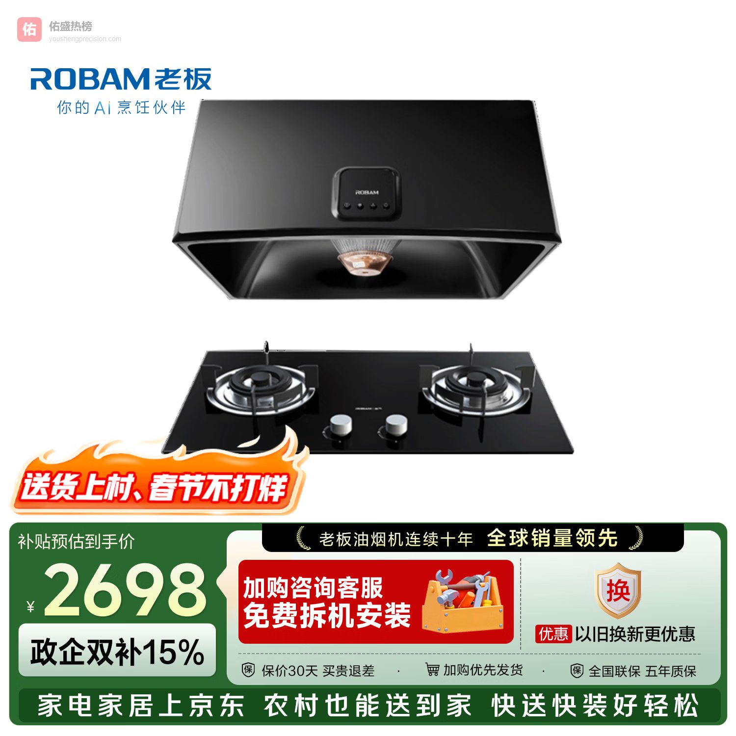 老板(Robam)烟灶套装抽油烟机小户型家用经典老式吸油烟机 中式小尺寸3009+5.0kW套装【套装商品】¥