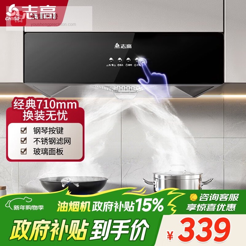 志高(CHIGO)【政府补贴 15%】油烟机 一级能效 中式家用大吸力抽油烟机顶吸小尺寸脱排油烟机 豪配按键款+不锈钢滤网+上门安装¥