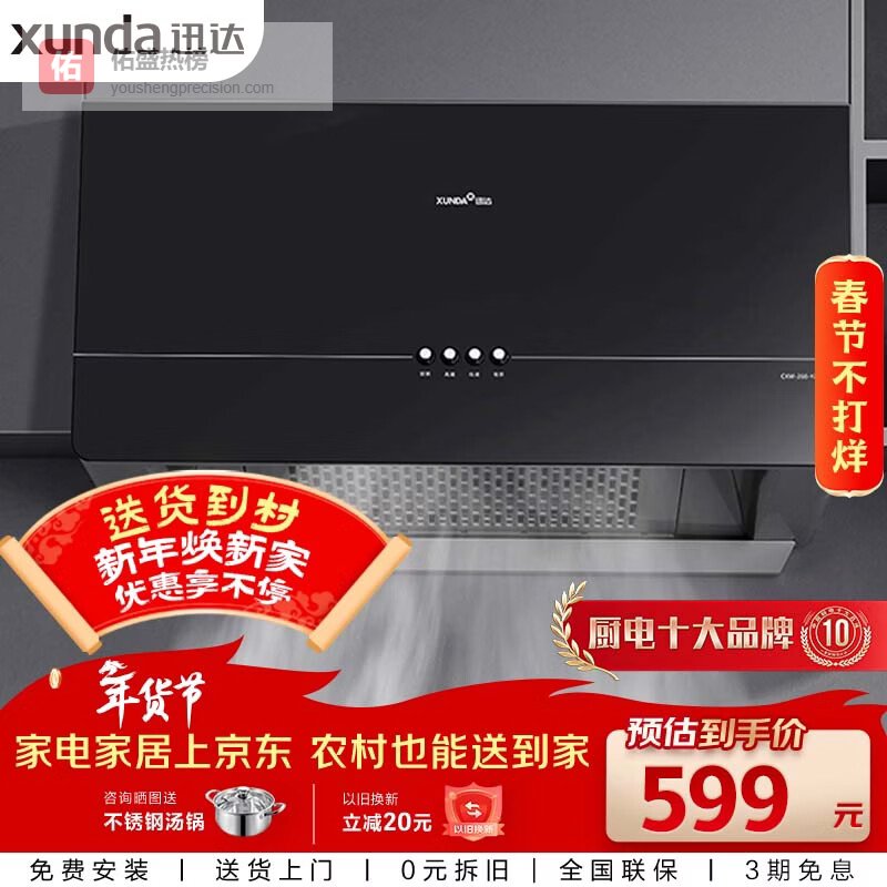 迅达(XUNDA)抽排中式吸油烟机家用小尺寸户型出租房700mm长一级能效按键控制 YZ1¥