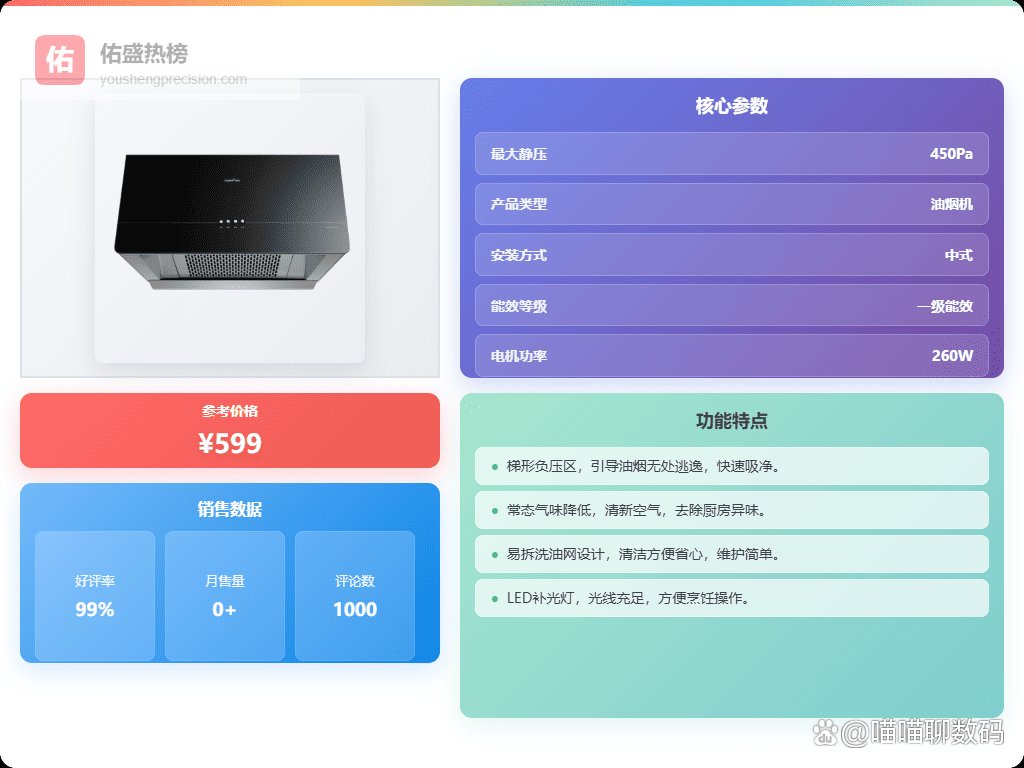 确实,现在市面上的油烟机品牌太多了,功能也是五花八门。但是对于咱们普通家庭来说,最重要的还是实用。吸力不够,做饭就是受罪;清洗麻烦,用不了多久就脏兮兮的,看着都影响心情。好在功夫不负有心人,翻了不少资料,也结合了身边朋友的经验,总算总结出了一些值得考虑的品牌。毕竟谁也不想花大价钱买个“样子货”,对吧?接下来我整理了10款口碑不错的,大家可以看看,希望能帮到正在纠结的你。