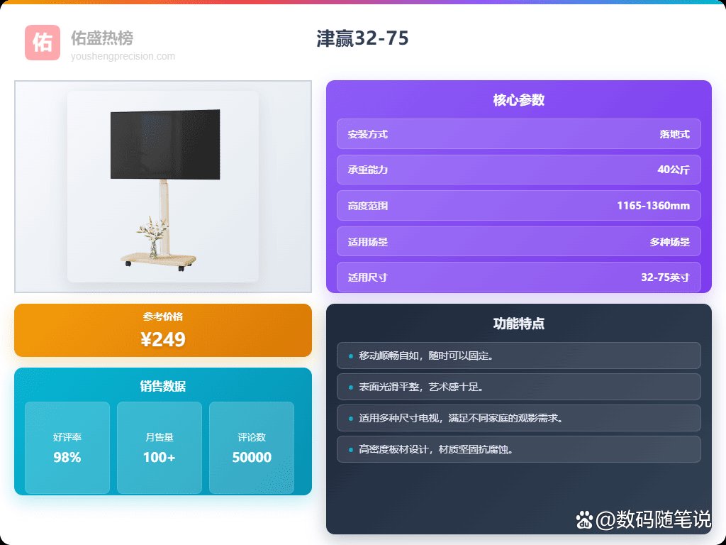 2026年家用电视支架选购指南:移动落地架哪个牌子更实用?精选津赢等四款高性价比电视支架推荐!