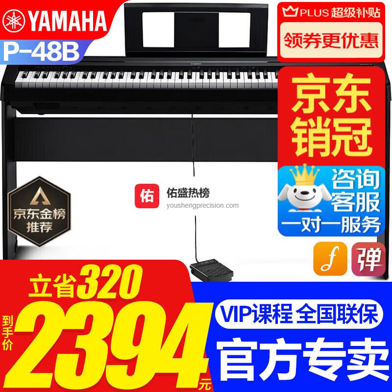 雅马哈P48B电钢琴考级教学入门成人学生88键智能重锤P45升级便携钢琴 P48B原装木架+原装单踏+官方标配¥