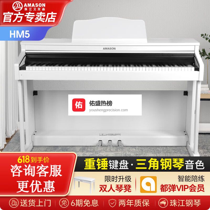 艾茉森(Amason)珠江电钢琴88键重锤立式儿童成人初学专业考级家用智能数码电钢琴 (2024新品)HM5白色¥