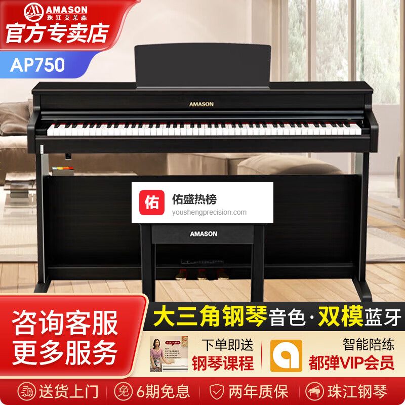 艾茉森(Amason)珠江电钢琴88键重锤立式儿童成人初学专业考级家用智能数码电钢琴 (2024新品)AP750¥