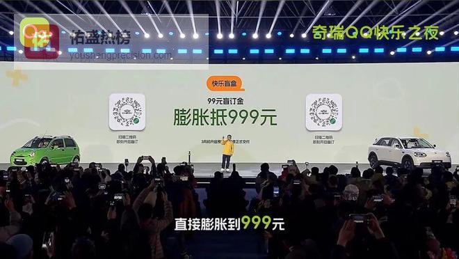 近日,奇瑞QQ(参数丨图片)以『王者归来,快乐加倍』为核心主题,在芜湖奇瑞龙山试验中心举办2026奇瑞QQ快乐之夜暨全新QQ3盲订活动。时隔23年,这款曾创下154万累计销量的国民小车正式回归市场,同时带来定位AI智趣纯电轿车的全新QQ3并开启盲订。