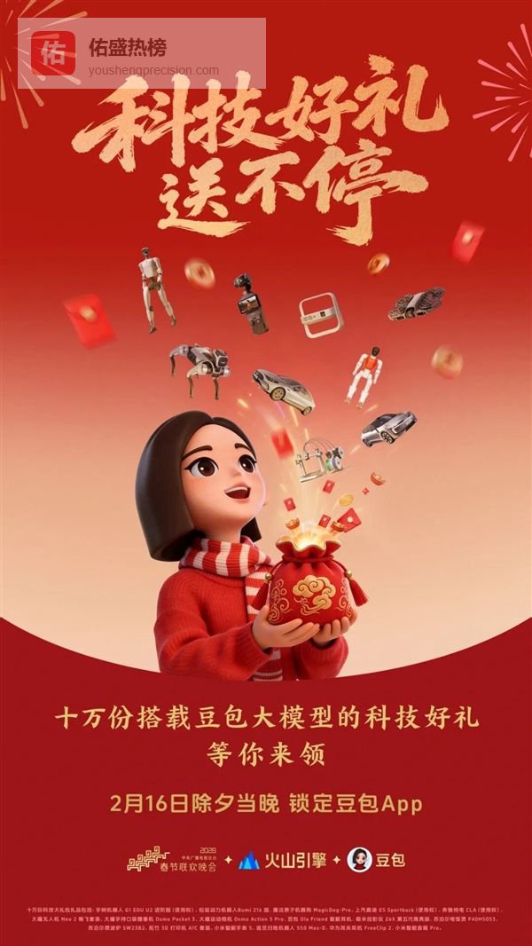 豆包作为今年央视春晚的合作伙伴,将在 2 月 16 日除夕当晚为全国观众送出超过 10 万份科技好礼,以及最高 8888 元新春现金红包。