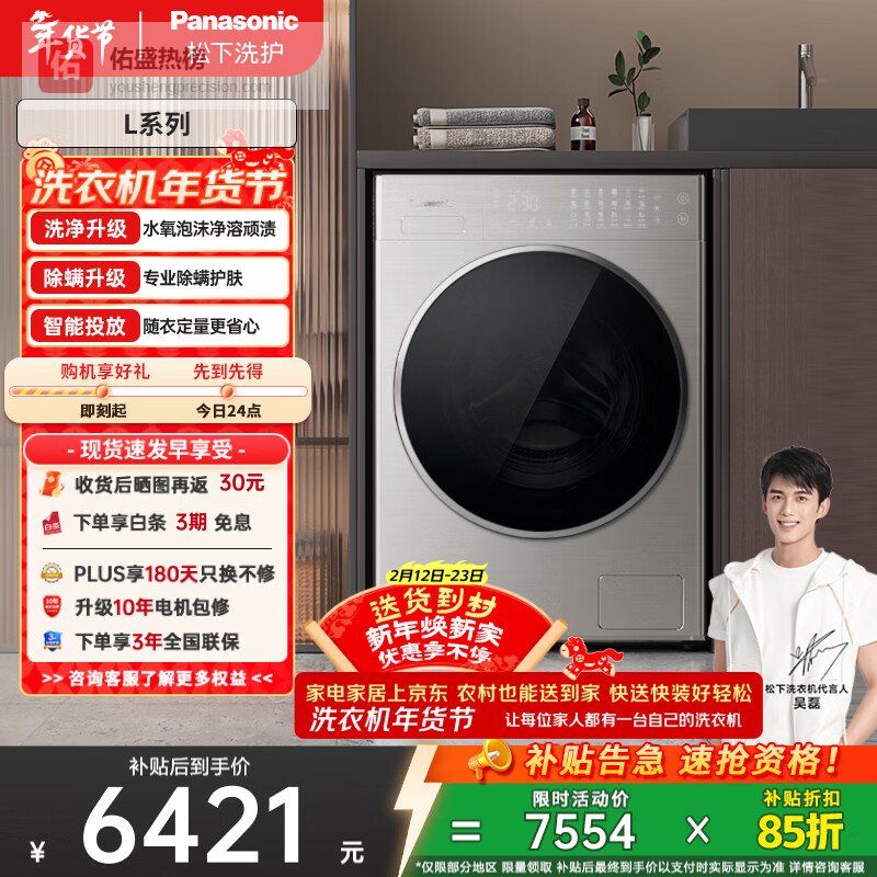 松下(Panasonic)L高奢系列 滚筒洗衣机 全自动家用 10KG 智能投放 水氧泡沫净 XQG100-L186¥