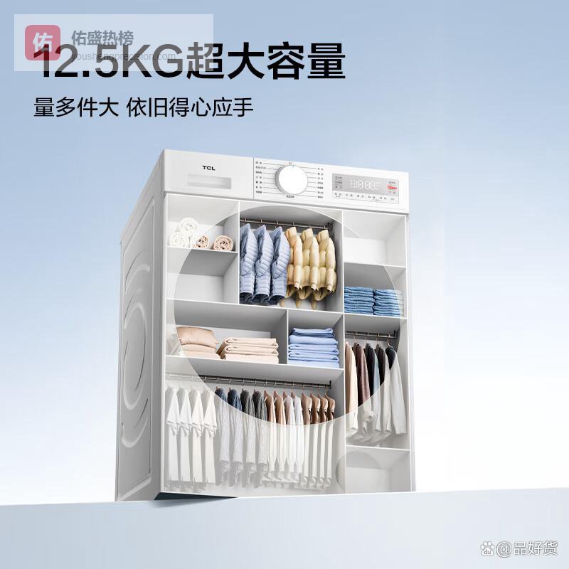 3、TCL V3R Max这款洗衣机采用变频滚筒设计,最高脱水转速达1400转/分钟,确保衣物彻底脱水,减少晾晒时间。其大容量12.5公斤,非常适合家庭使用,能轻松应付大件衣物和多件洗涤需求。配备的智能投放系统,可以自动感知衣物重量,精准添加洗涤剂,泡沫少,洗净效果更佳。