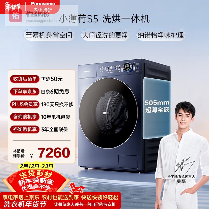 松下(Panasonic)小薄荷S5 滚筒洗烘 10KG全自动洗衣机 505mm超薄全嵌滚筒洗衣机 XQG100-M2SA1¥