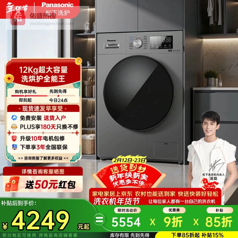 松下(Panasonic)大海豹滚筒洗烘一体洗衣机12公斤大容量变频节能除菌除螨羽绒羊毛洗泡沫净XQG120-80ND1¥