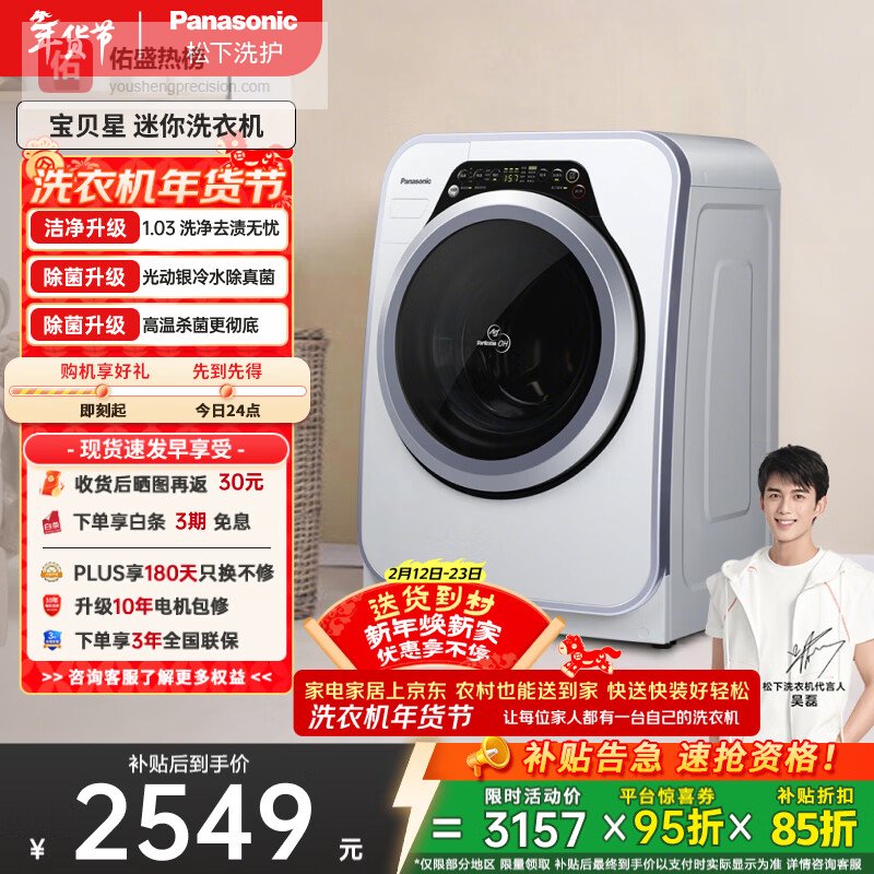 松下(Panasonic)迷你滚筒 3.2KG 小型全自动母婴儿童内裤内衣洗衣机 光动银除菌 高温煮洗 XQG32-A312D¥