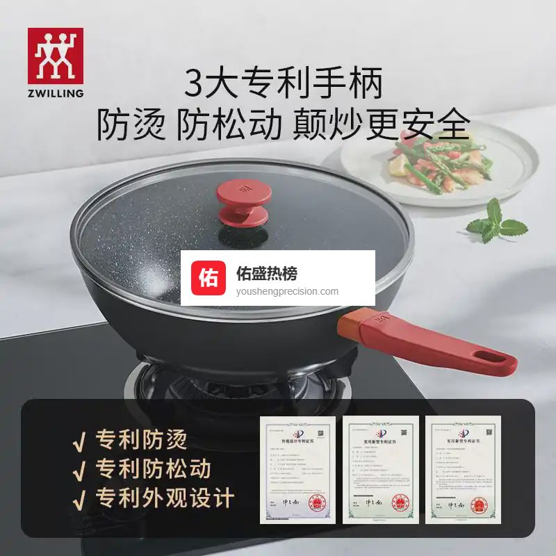 二、登上神坛的五大硬核实力 1️⃣ 钛合金涂层的分子革命 与传统特氟龙涂层不同,双立人采用钛+钻石粒子熔射技术,显微镜下可见涂层表面形成蜂窝状结构。实测用1/3常规油量煎荷包蛋时,蛋液能在锅面自由滑动,翻面时边缘金黄完整不粘连。这种涂层硬度达到莫氏7级(接近石英),即使用金属铲翻炒也不会留下划痕。