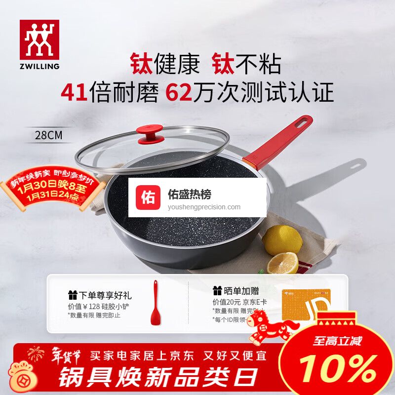 传统不粘锅的涂层往往在高温下快速失效,而普通铁锅又需要复杂的开锅养锅流程。双立人NOW PLUS II系列28cm煎锅的出现,就像厨房里的“救场英雄”——德国百年品牌背书,连续三年蝉联《消费者报告》不粘锅榜首,其专利钛合金涂层技术彻底颠覆了我们对不粘锅的认知。