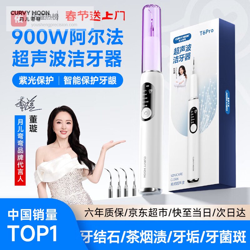 月儿弯弯超声波洁牙器洗牙器结石去除清洁牙齿牙垢去黄牙结石清洁器烟渍茶渍工具情人节礼品送父母长辈 900W【紫光高频版】+ 4支喷头 +7件套¥