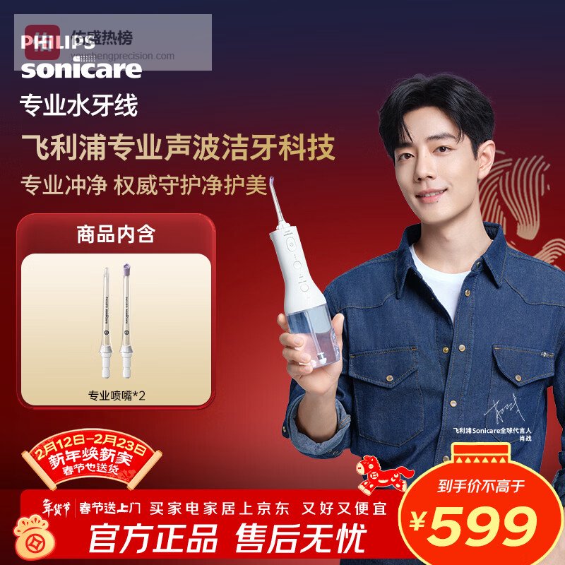 推荐理由:这款飞利浦冲牙器用的是X脉冲水流技术,听说能更彻底地清洁牙缝和牙齿间的死角。而且它还有五档水压调节,不管是牙龈敏感还是想深度清洁,都能找到合适的力度,用起来挺人性化的。