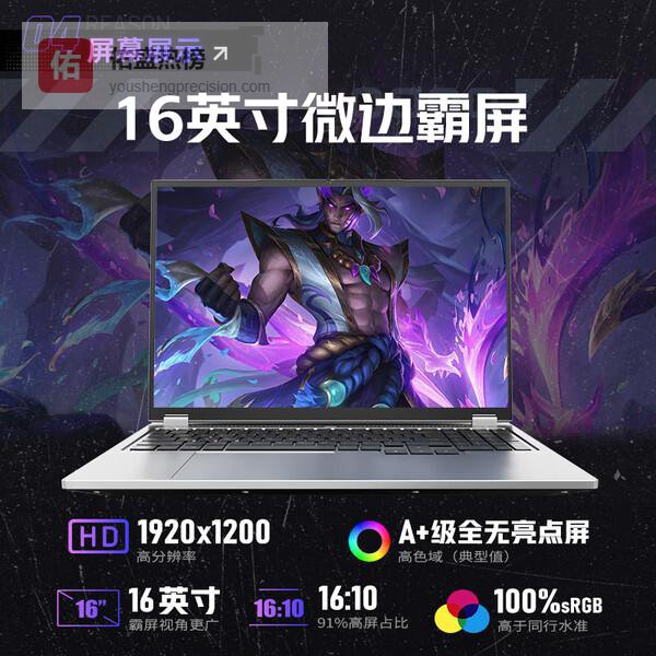 这款笔记本还采用16英寸的高清屏幕,支持1920x1200分辨率,配合全DC调光和莱茵低蓝光认证,能有效减缓眼部疲劳,保护视力。16:10黄金比例带来更宽的纵向显示空间,同时具备全视角和高色域,画面色彩还原挺自然,视觉体验还行。防眩光设计让户外或明亮环境下使用更舒适。