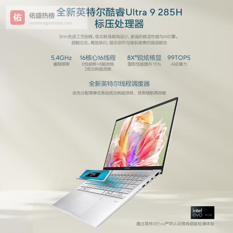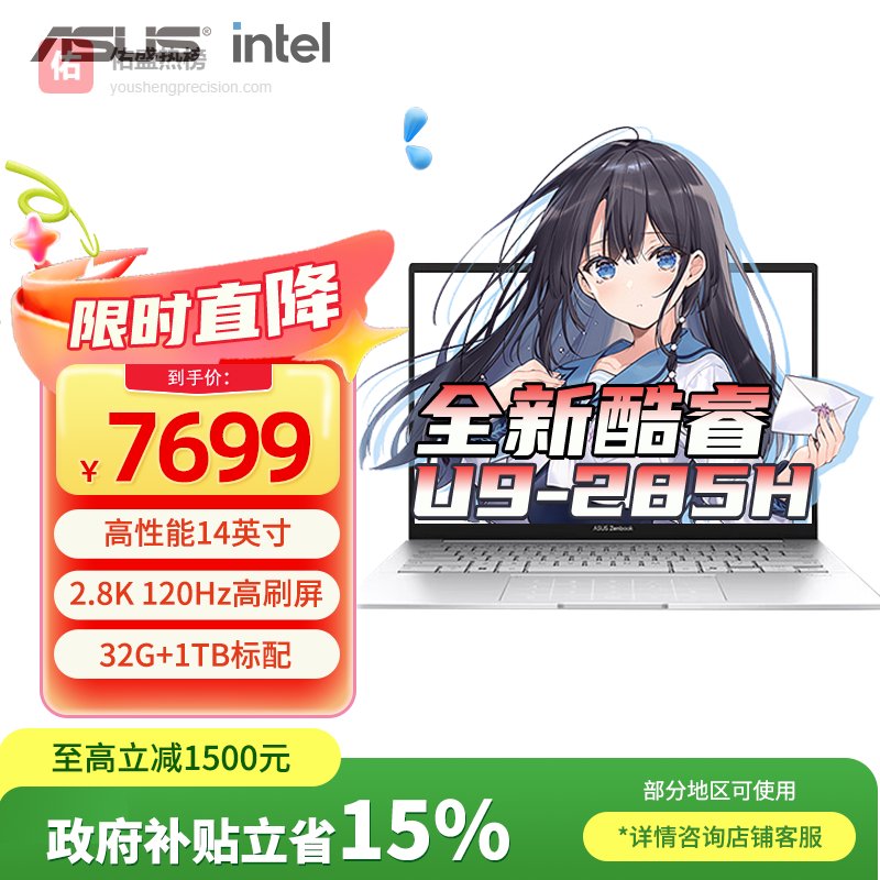 华硕(ASUS)灵耀14笔记本 国家补贴15% 高性能14英寸全新酷睿Ultra9 2.8K 120Hz轻薄办公学生设计商务手提电脑 Ultra9-285H 32G 1T 银色 官方标配¥