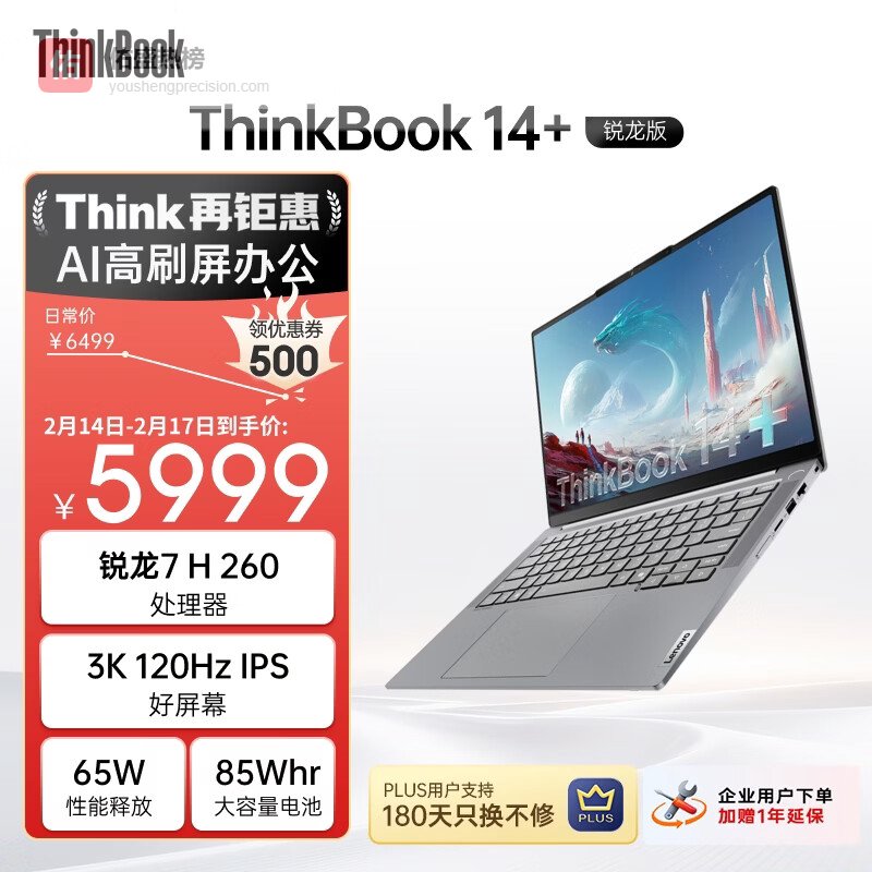 ThinkPad【国家补贴15%】联想笔记本电脑ThinkBook 14+锐龙AI全能本R7 H 260 14.5英寸32G 1T 3K高刷屏¥