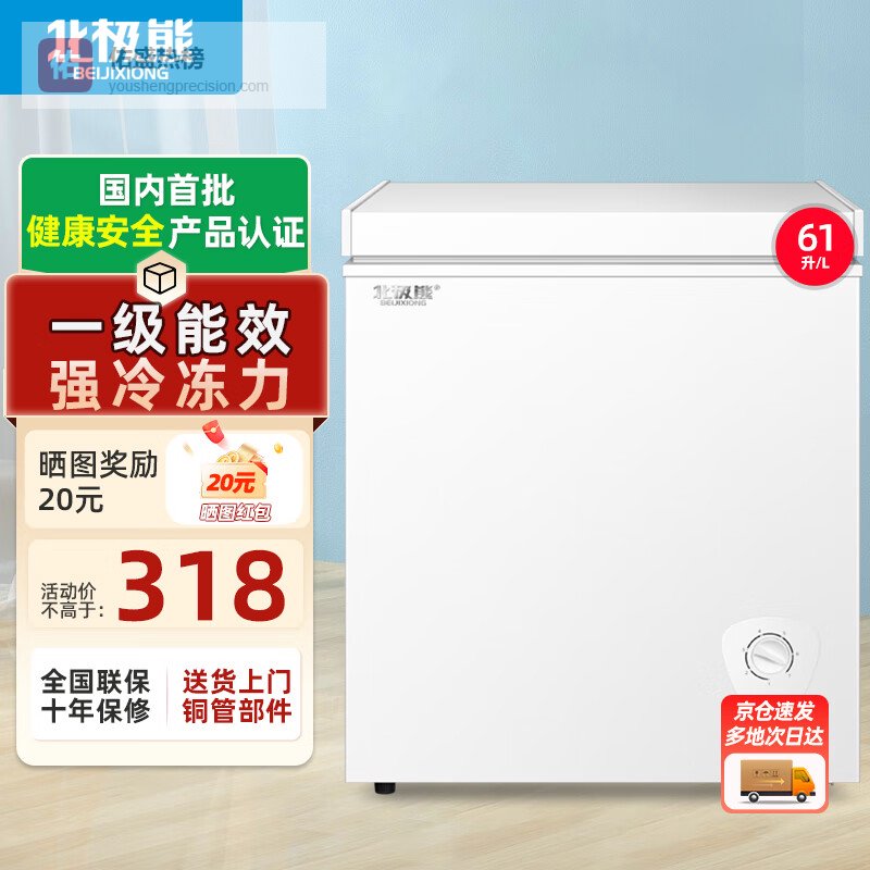 北极熊(BEIJIXIONG)冰柜家用冷柜小型一级能效全冷冻冷藏两用卧式储奶母乳速冻保鲜节能省电100升/200升/300升 单门单温61升【万人力荐 一级能效】 61L¥