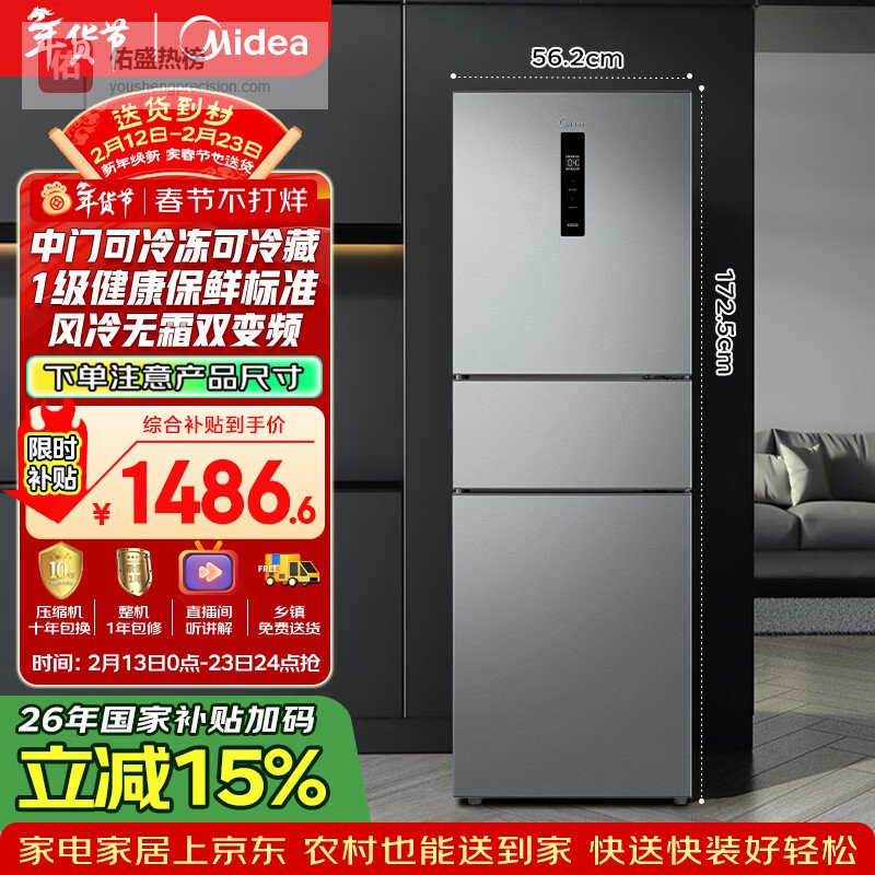 第2款:美的249L三开门美的这款MR-249WTPE冰箱主打全净保鲜,官方介绍说它能保鲜、抗菌、净味、防霉,四效合一。我倒是觉得99.99%的除菌率和99.2%的除异味听着挺玄乎,不过有总比没有强,能稍微抑制细菌,去除点冰箱里的怪味,用起来也更安心。而且它还是风冷无霜的,不用自己动手除霜这点确实省事不少。