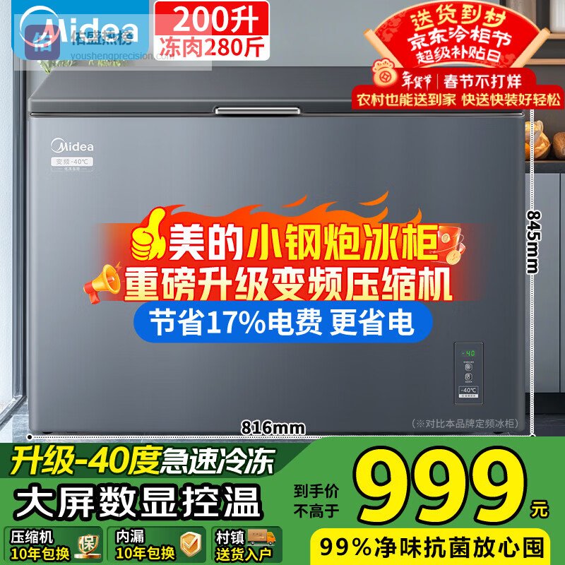 第2款:美的小钢炮200升这款冷柜在冷冻方面确实下了功夫,-40℃深冷速冻,官方说能实现细胞级瞬冷,减少食材损伤,这个我倒是觉得还行,起码冻海鲜啥的应该挺不错,能更好地保持口感和营养。而且它制冷效率也挺高,冷冻力达到11kg/12h,比国家标准高不少,冻东西速度快,这对于偶尔需要大量囤货的家庭来说,挺实用。