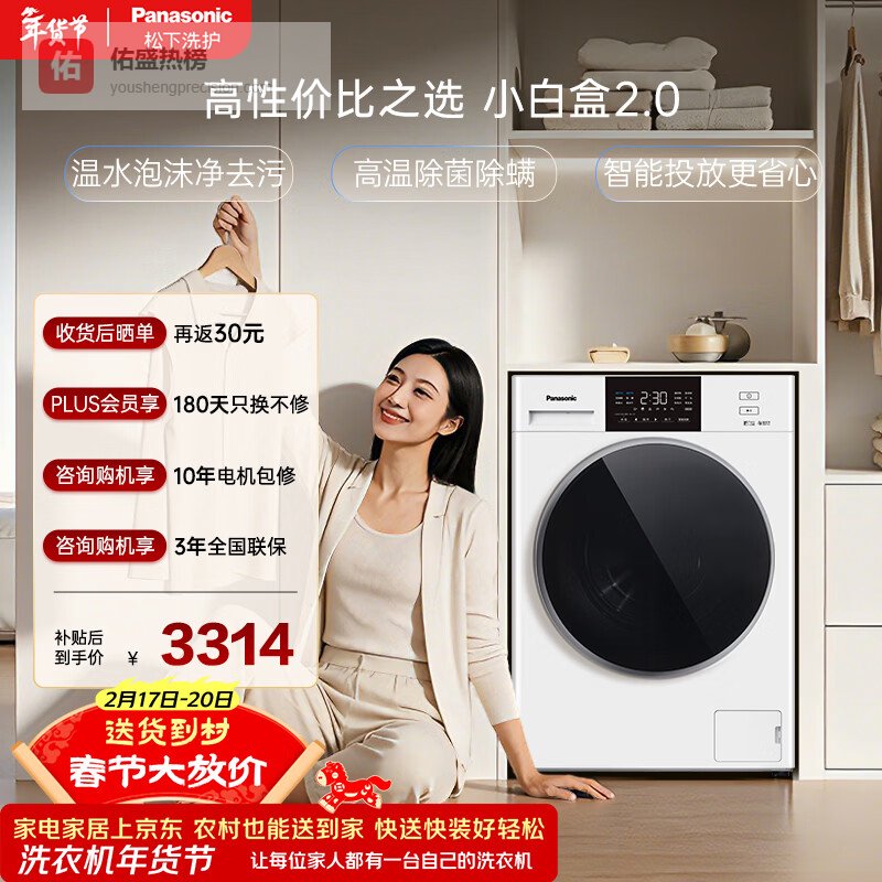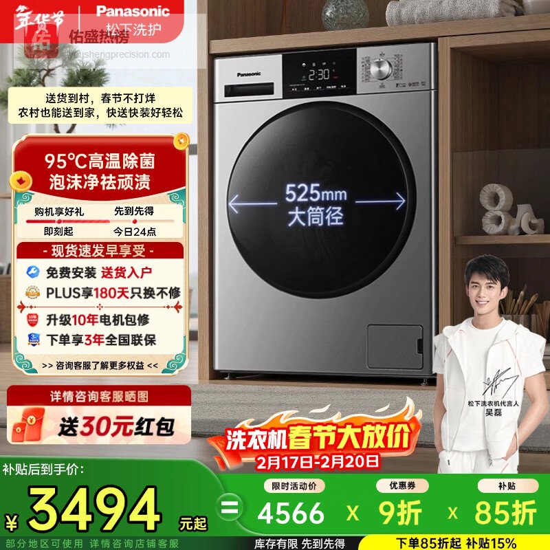 【京东自营】松下白月光4.0洗烘套装10KG滚筒洗衣机全自动+10KG热泵烘干机光动银冷水除菌153¥
