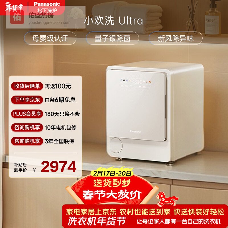 【京东自营】松下小欢洗Ultra滚筒洗烘2KG小型全自动迷你内裤内衣洗衣机母婴认证除菌螨XQG20-¥