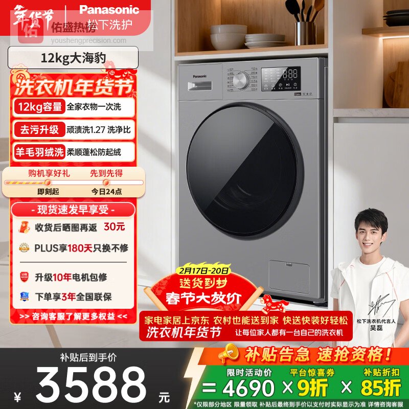 【京东自营】松下大海豹滚筒洗衣机12KG大容量专属顽渍洗直驱电机XQG120-80N1¥