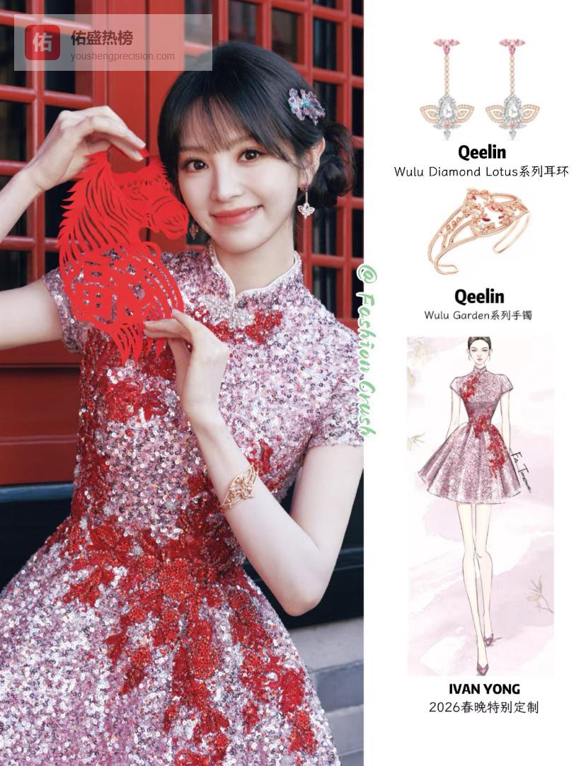 白鹿、李兰迪、田曦薇三人的造型,无疑是春晚舞台的“顶配”水准。她们的礼服均为专属定制,细节处尽显匠心。有的裙身缀满繁复的手工钉珠,在灯光下折射出耀眼光芒;有的融入传统刺绣工艺,花鸟纹样栩栩如生,兼具年味与贵气;还有的采用高定面料,剪裁贴合身形,将少女的灵动与优雅完美融合。每一处设计都经过反复打磨,既契合节目主题,又最大化展现了个人优势。