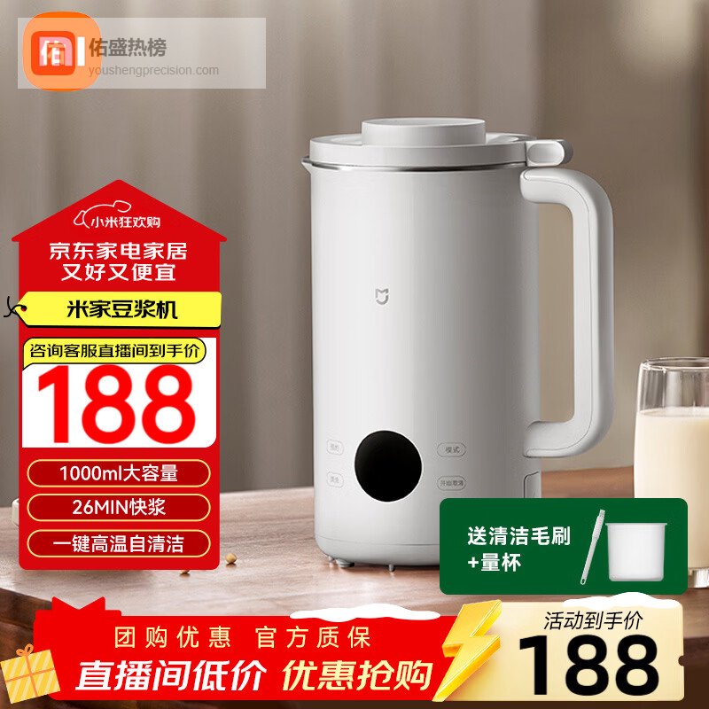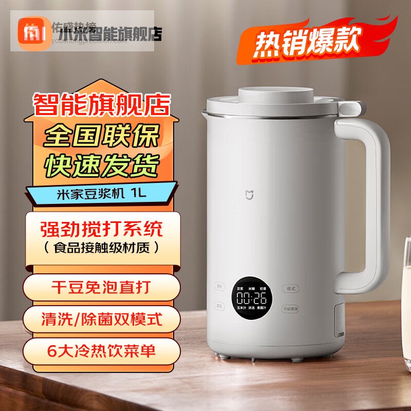 【品牌直营】小米米家豆浆机家用干豆直打快速出浆搅拌机多功能可保温/预约智能加热榨汁机米家豆浆机1L¥