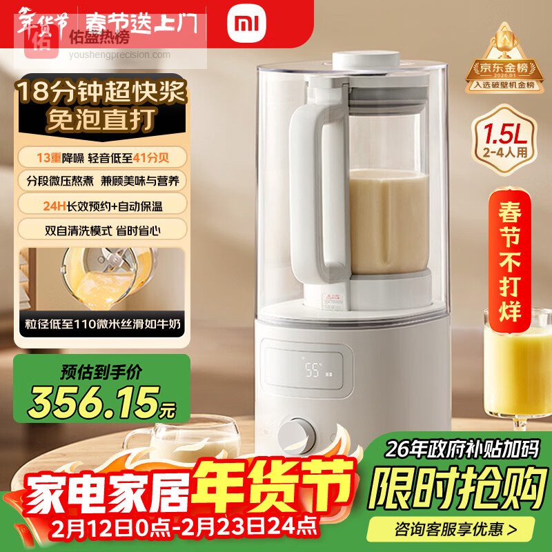 【品牌直营】米家小米智能轻音破壁机S2豆浆机多功能榨汁机料理机儿童辅食机自清洁1.5L容量预约保温破¥