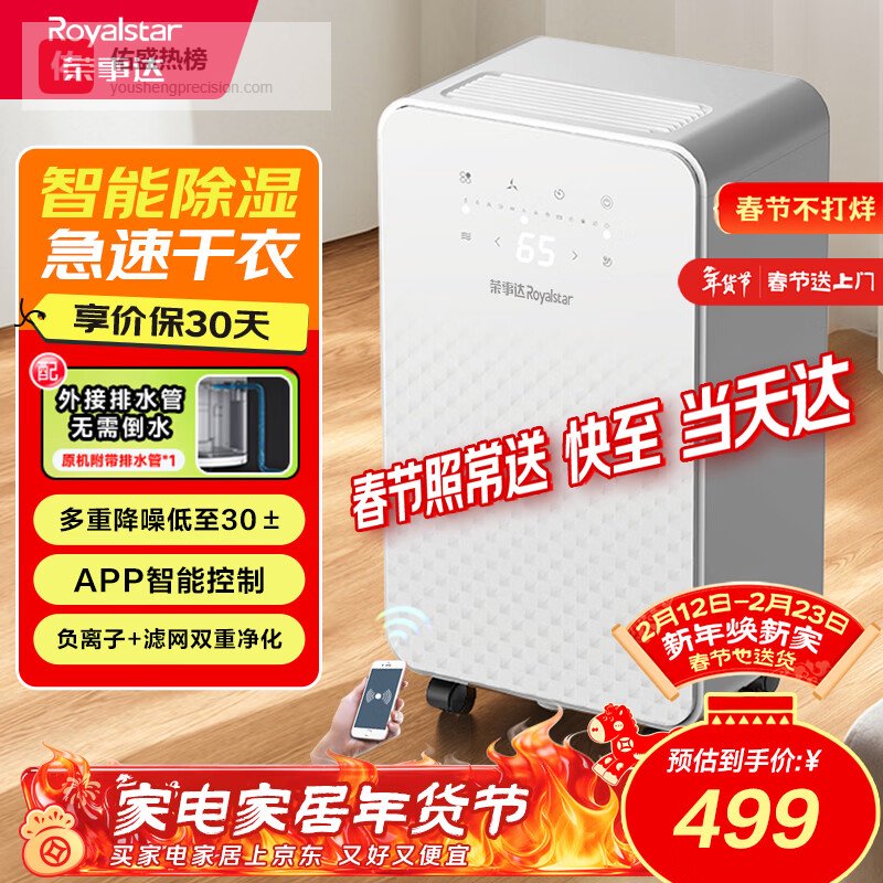 【京东自营】荣事达家用除湿机12L/天2-20㎡适用回南天首选负离子净化轻音除湿RSD-FD5181¥
