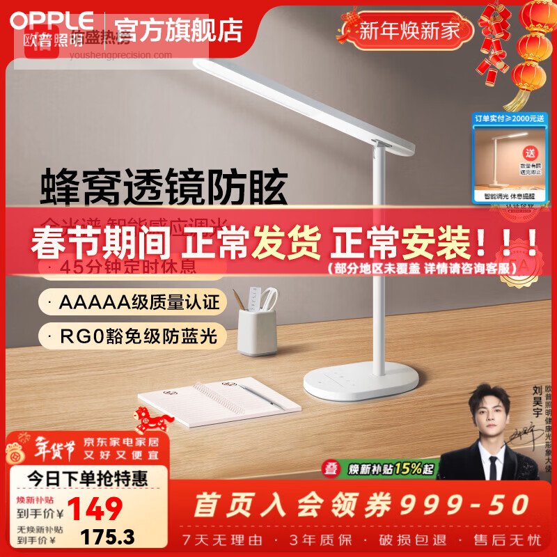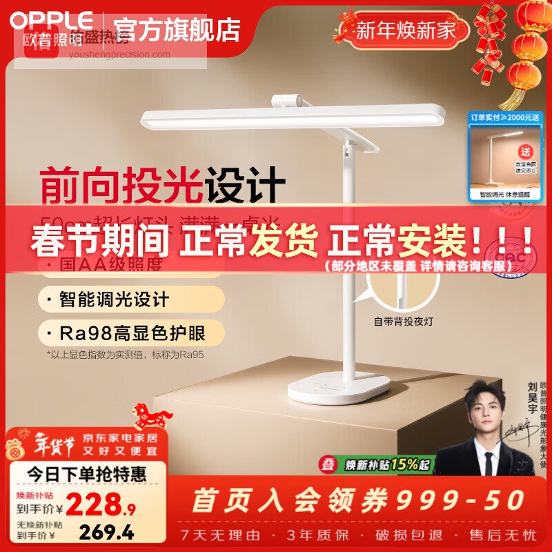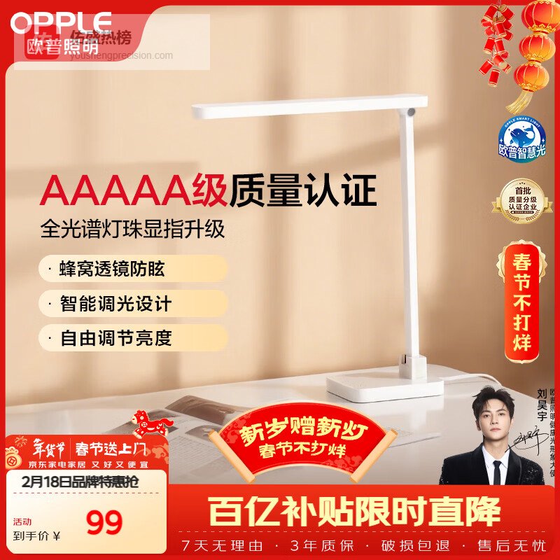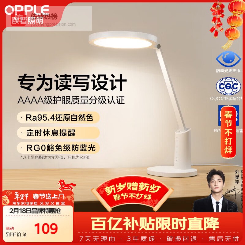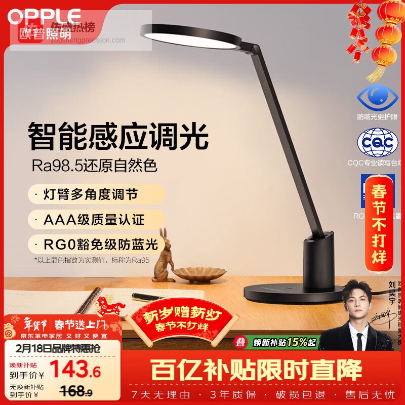【京东自营】欧普照明AAAA级护眼灯工作阅读调光宿舍书房儿童学生学习家用台灯元至S¥