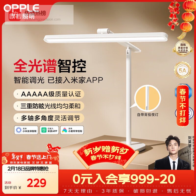 【京东自营】欧普照明AAAAA级质量分级双重防眩学生宿舍书桌学习护眼读写台灯米至Pro¥