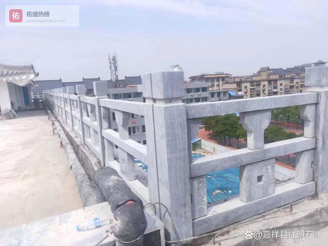 5.现场安装:安装前需确保基础(如地面、台阶)牢固平整。按照施工图纸,通过预埋件、干挂或湿贴(使用石材胶粘剂和水泥砂浆)等方式,将各个构件牢固地组装起来。安装过程中需使用水平仪、铅垂线等工具确保栏杆的垂直度、水平度和线性平直度。接缝处需使用专用填缝剂进行勾缝处理,保证美观和防水。