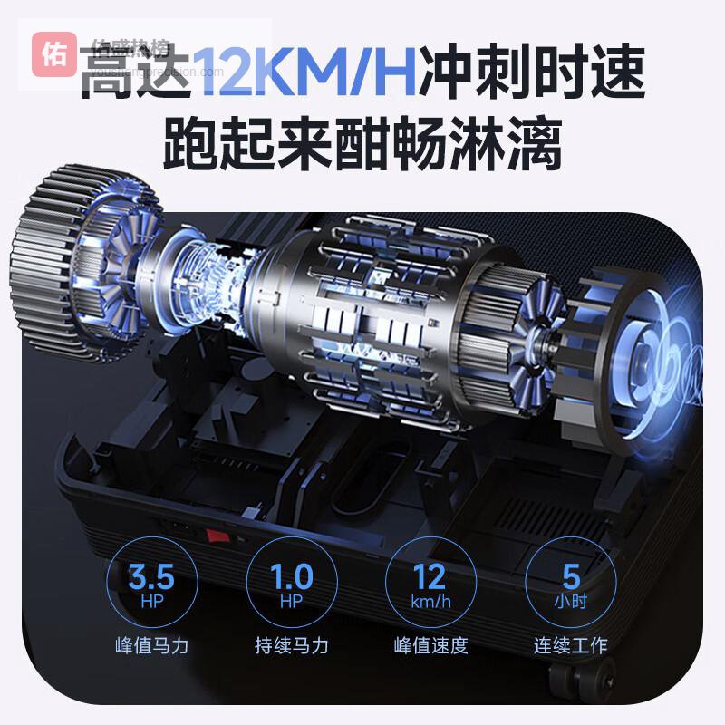 高效动力系统支持:搭载强劲的3.5HP双动力引擎,最大时速可达12KM/H,轻松应对各种高强度训练。无论是冲刺训练还是耐力跑步,都能提供稳定且强劲的动力输出,帮助用户实现运动目标。无论是日常锻炼还是专业健身,动力系统都能带来全方位的支持。