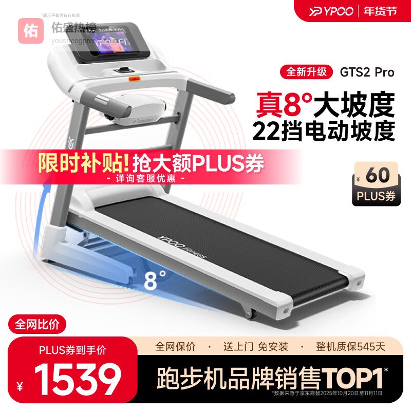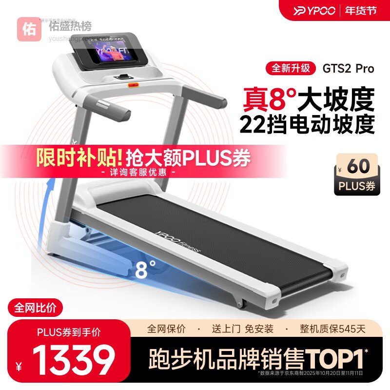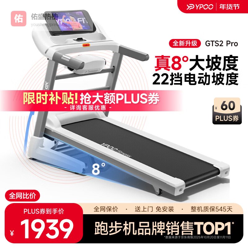 易跑走步机哪款性价比最高又好用?第一款:易跑YPOO-GTS2智能跑步机 可折叠家用健身器