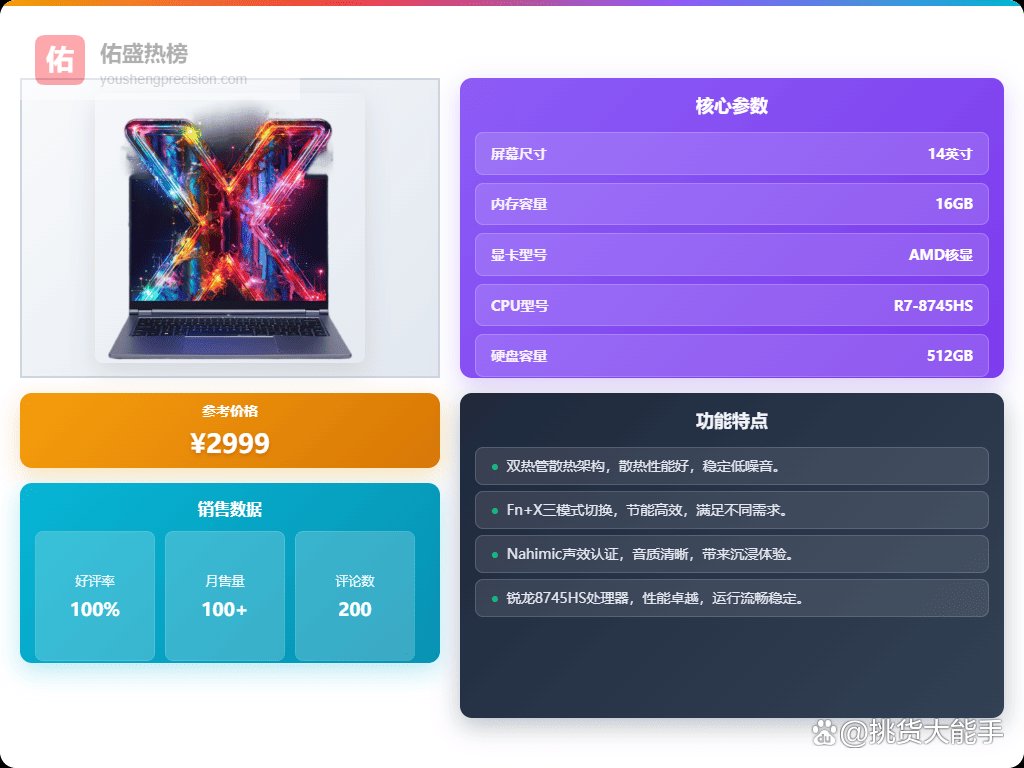 推荐理由:这款机械革命无界14X斗战版搭载的是AMD锐龙7 8745HS处理器,性能很给力,满足日常办公、轻度设计和娱乐没问题。它的8核16线程设计,让你用起来特别顺滑,单核最高能达到4.9GHz,处理各种任务都快人一步。