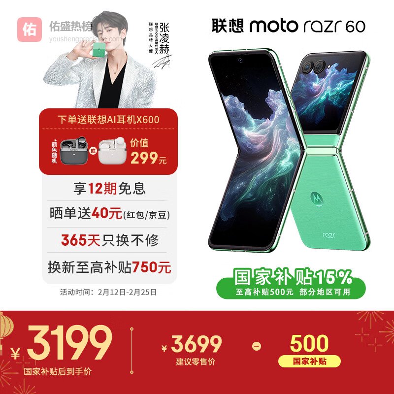 时尚折叠尝鲜:摩托罗拉 moto Razr 60(冰淇淋绿,12+256GB,到手价3699)