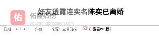 专访:连奕名陈实夫妇:相识一个月就情订终身——搜狐娱乐 好友透露连奕名陈实已离婚——生活日报 连奕名妻子生日,他与子亲手制作蛋糕,杨若兮46岁素颜脸肿偏嘴——搜狐娱乐