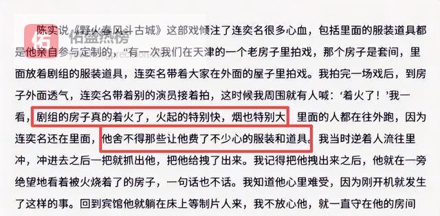 连奕名一心只想着冲进火海,抢救那些珍贵的道具,全然不顾自身安危。