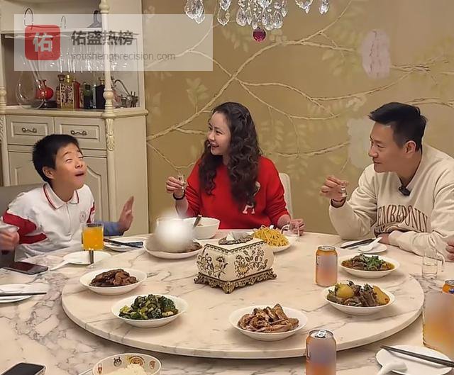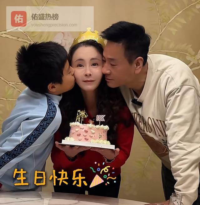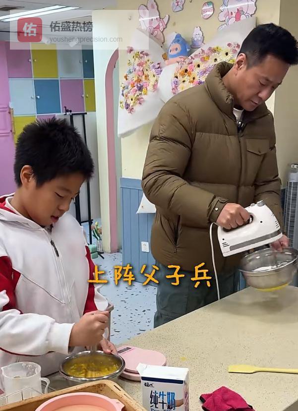总会提前推掉所有工作,陪着11岁的儿子大福一起,亲手为她制作粉色爱心芒果夹心蛋糕,父子俩分工合作,小心翼翼地涂抹奶油、摆放水果,笨拙却满是心意。